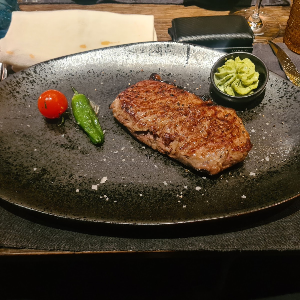 Walking inside, the atmosphere feels immediately cozy and upscale at the same time. Soft lighting, stylish décor, and the aroma of grilled specialties create an inviting environment that encourages you to slow down and enjoy the moment. It’s the kind of place where dinner feels like an experience rather than just a quick meal. The layout is comfortable, and practical amenities like a clean restroom add to the convenience of the visit.